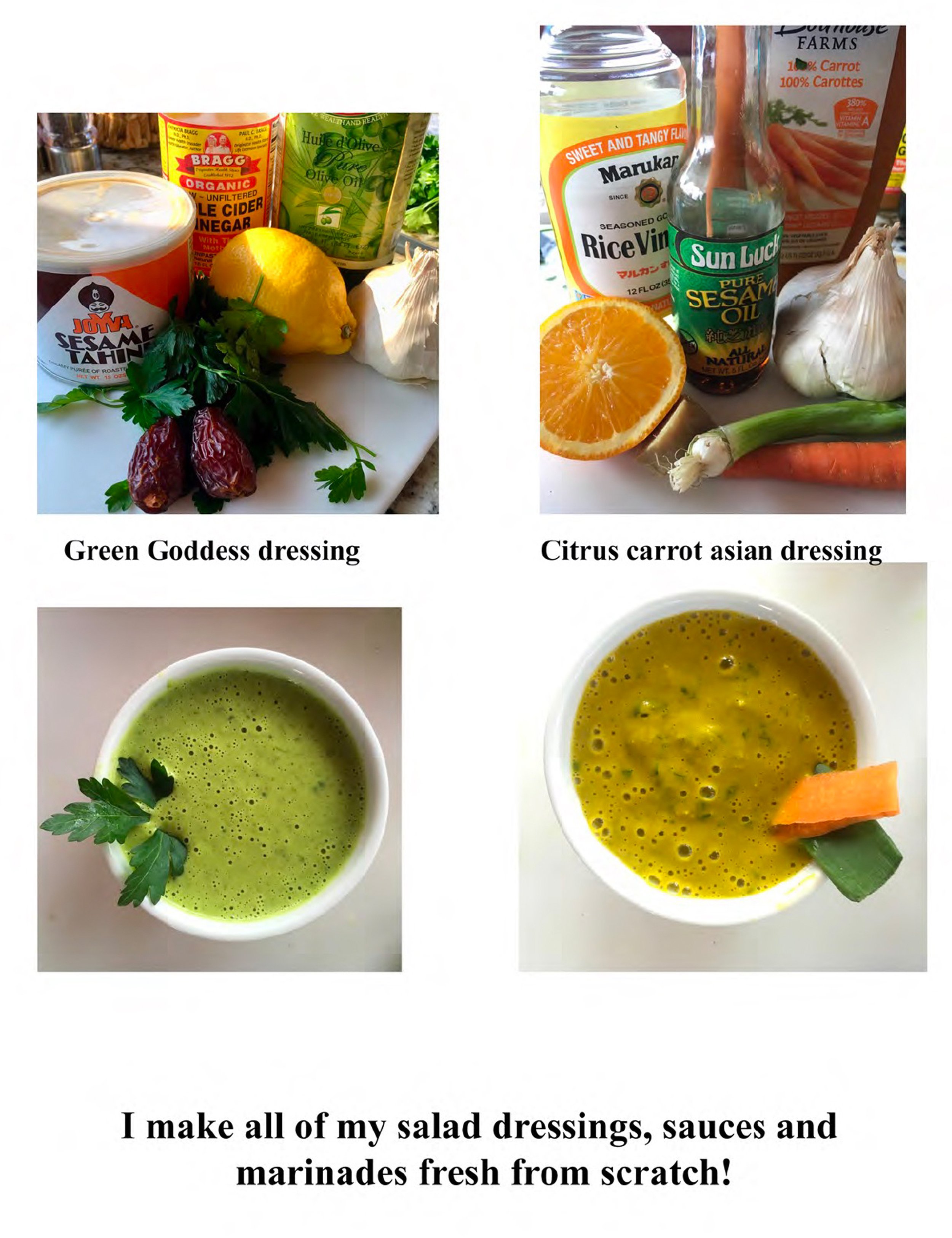 sustainable sourced food, consciousness of the environment, fresh, lower in salt, sugar and fats than what you will find in restaurants, I stay away from seed oils, I make all my sauces, marinades, dressings and more from scratch—no shortcuts in my book!